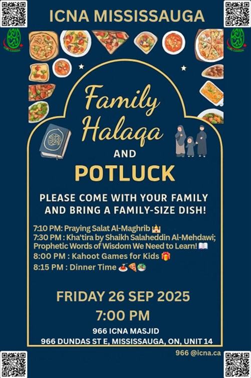 The Family Halaqa & Potluck is a bi-weekly community gathering designed to bring families together in a warm and welcoming environment. It combines spiritual growth, learning, and fun activities for all ages.
